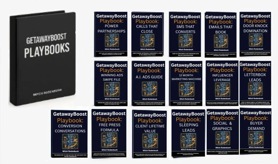 Earnings Disclaimer: Every real estate market and agent’s approach is unique, using different strategies, local conditions, and client relationships. Therefore, individual results will vary from agent to agent. YOUR RESULTS WILL DEPEND ON FACTORS UNIQUE TO YOUR BUSINESS, INCLUDING BUT NOT LIMITED TO YOUR MARKETING EFFORTS, FOLLOW-UP, LOCAL COMPETITION, AND HOW YOU IMPLEMENT THE GETAWAYBOOST SYSTEM.